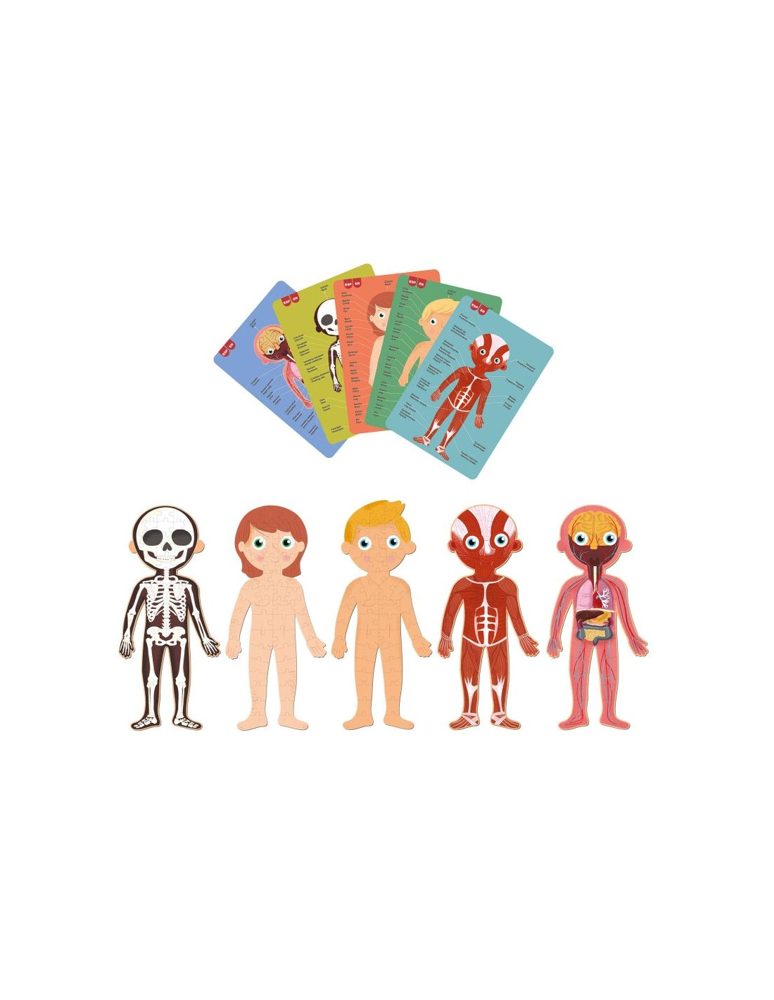 Incluye 5 puzles en forma del cuerpo humano y fichas con información detallada