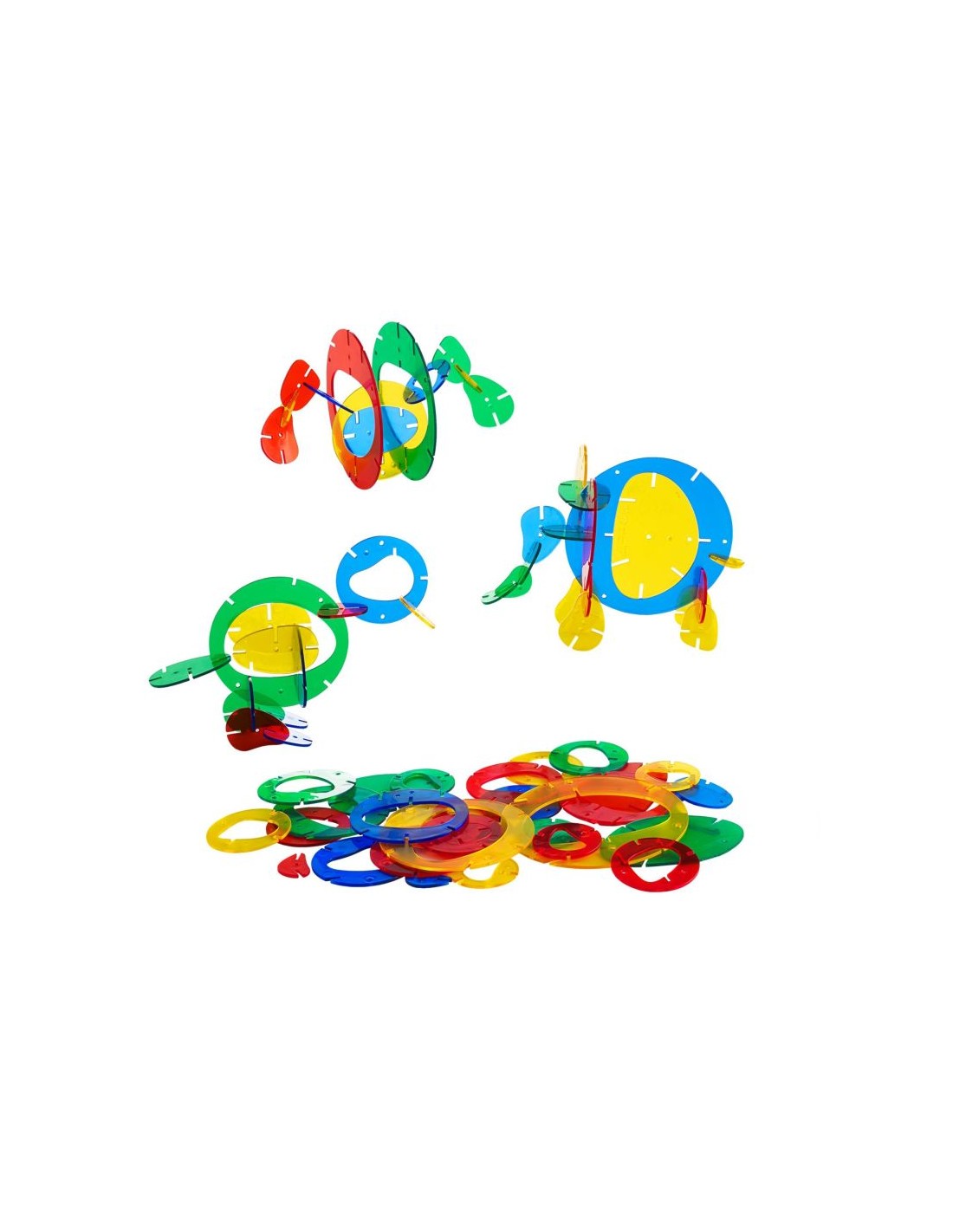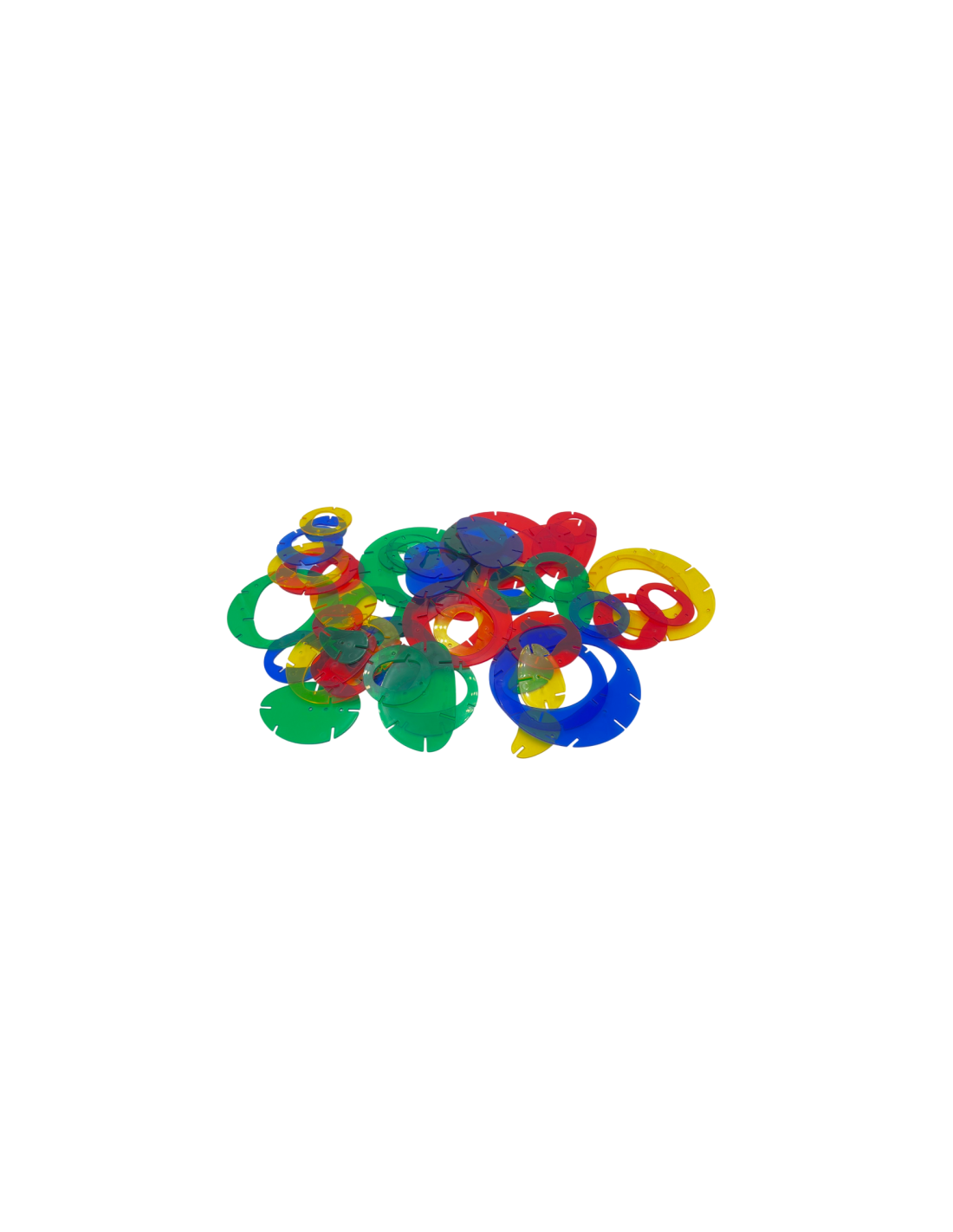 96 piezas en plástico translúcido en 4 colores.