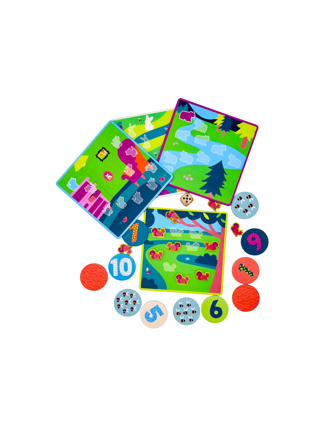 Juego de asociación para niños de entre 4-5 años. Realizarán representaciones de las tarjetas tirando el dado y rellenando la tarjeta con los animales que marque.