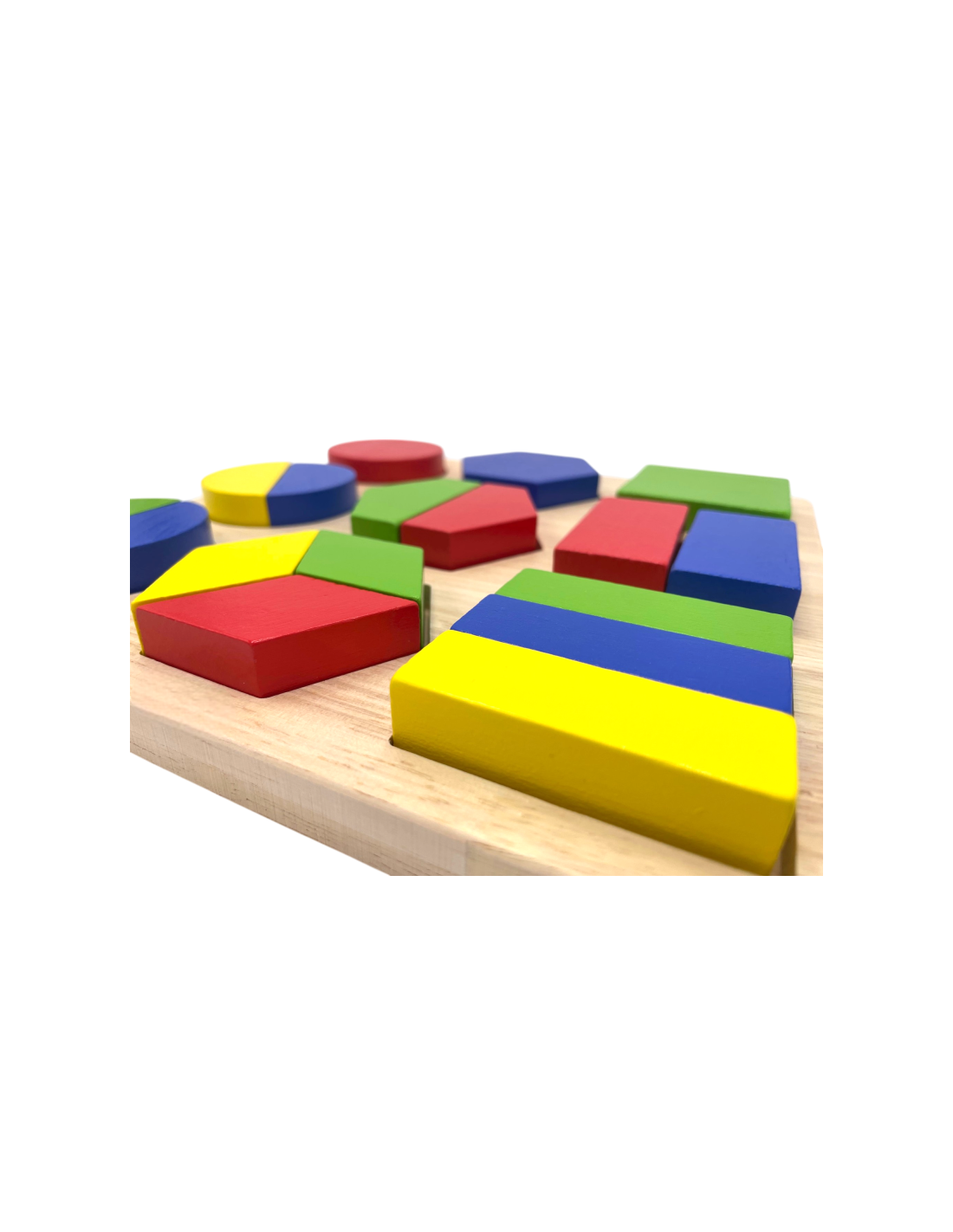 - 19 Piezas realizadas en madera de alta calidad.