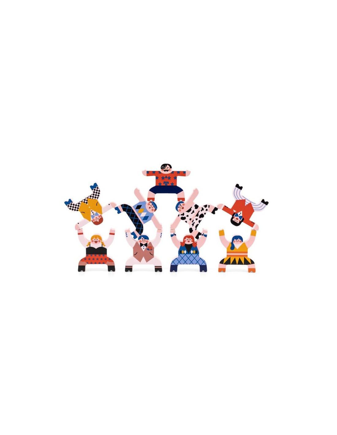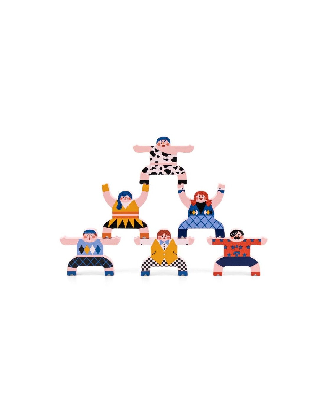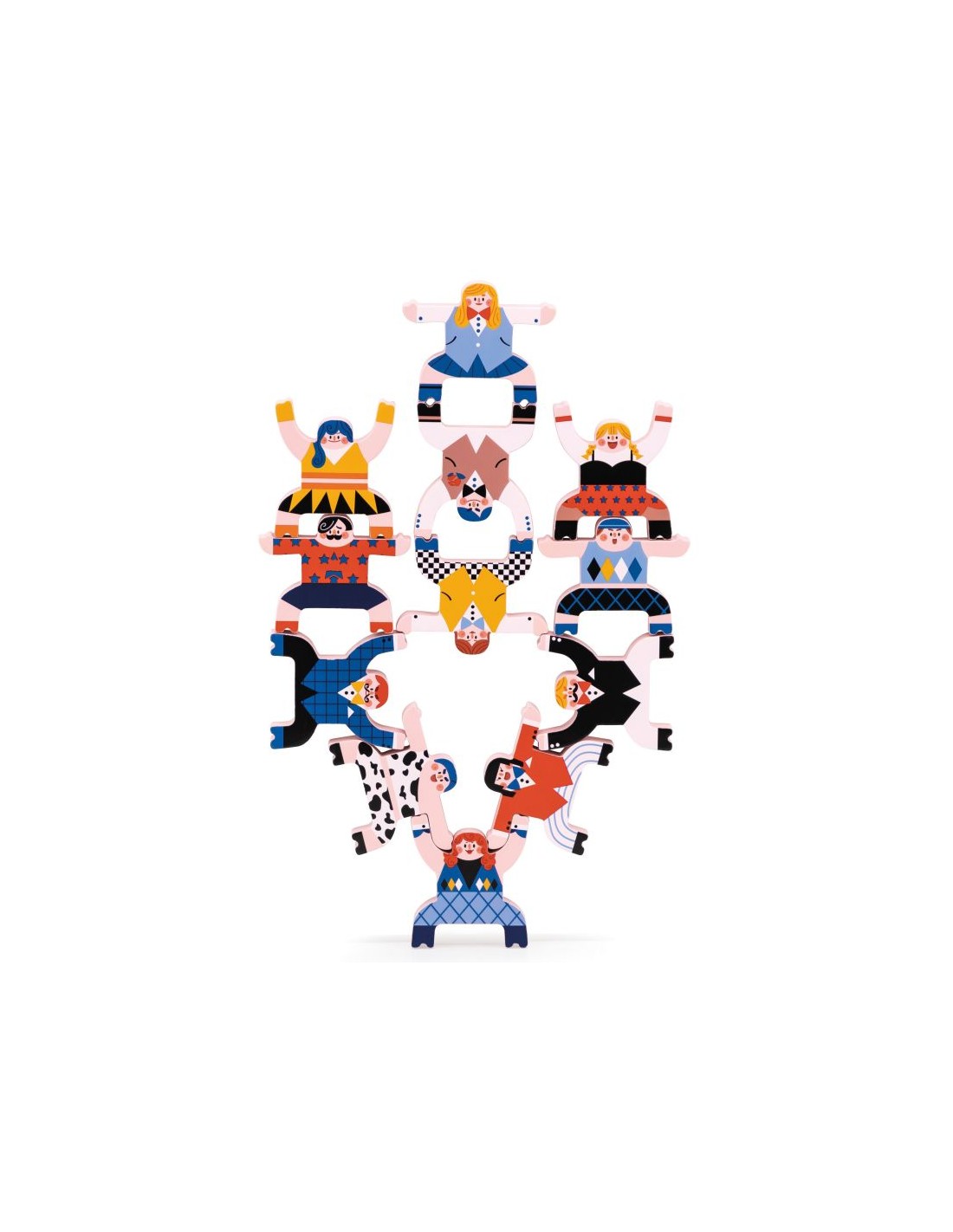 Su objetivo es construir una pirámide estable con 12 acróbatas de madera.