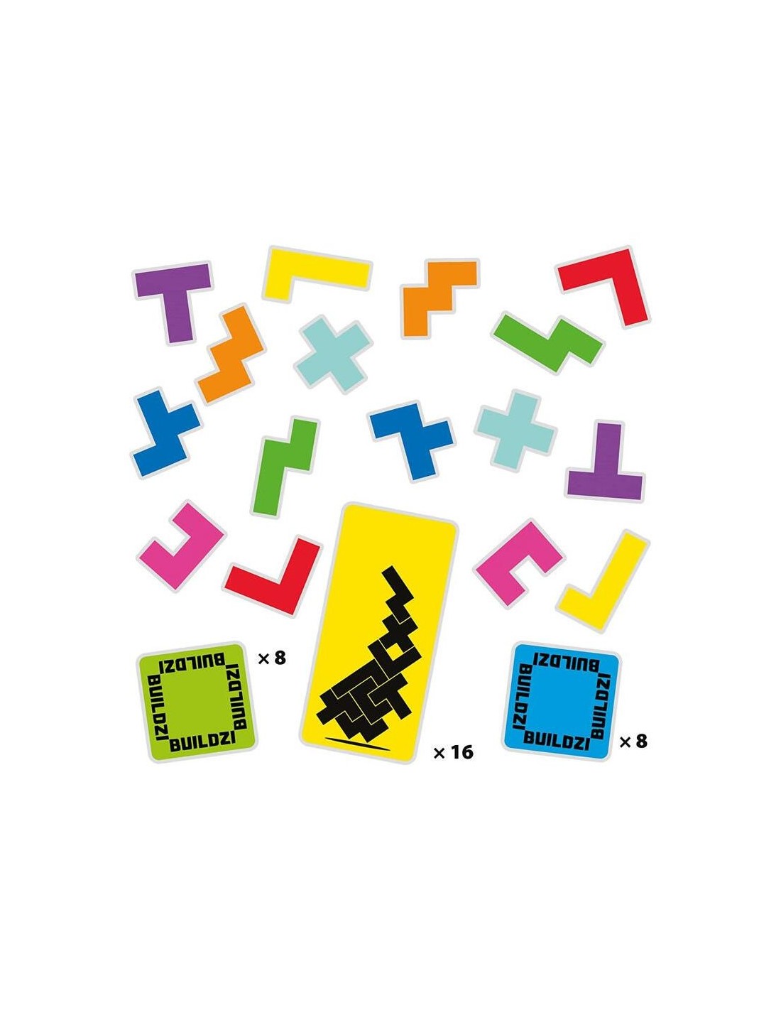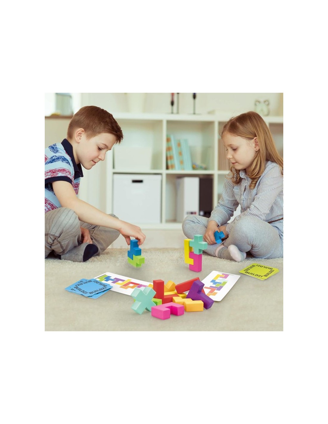 Contenido: 16 bloques de diferentes figuras, 32 tarjetas de torre, 16 tarjetas de bloque y reglas del juego.
