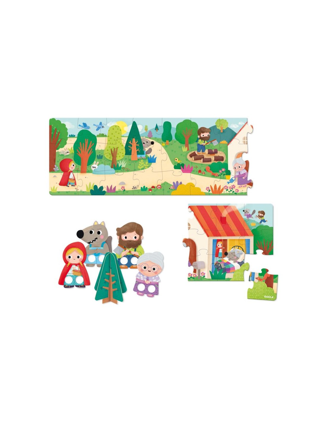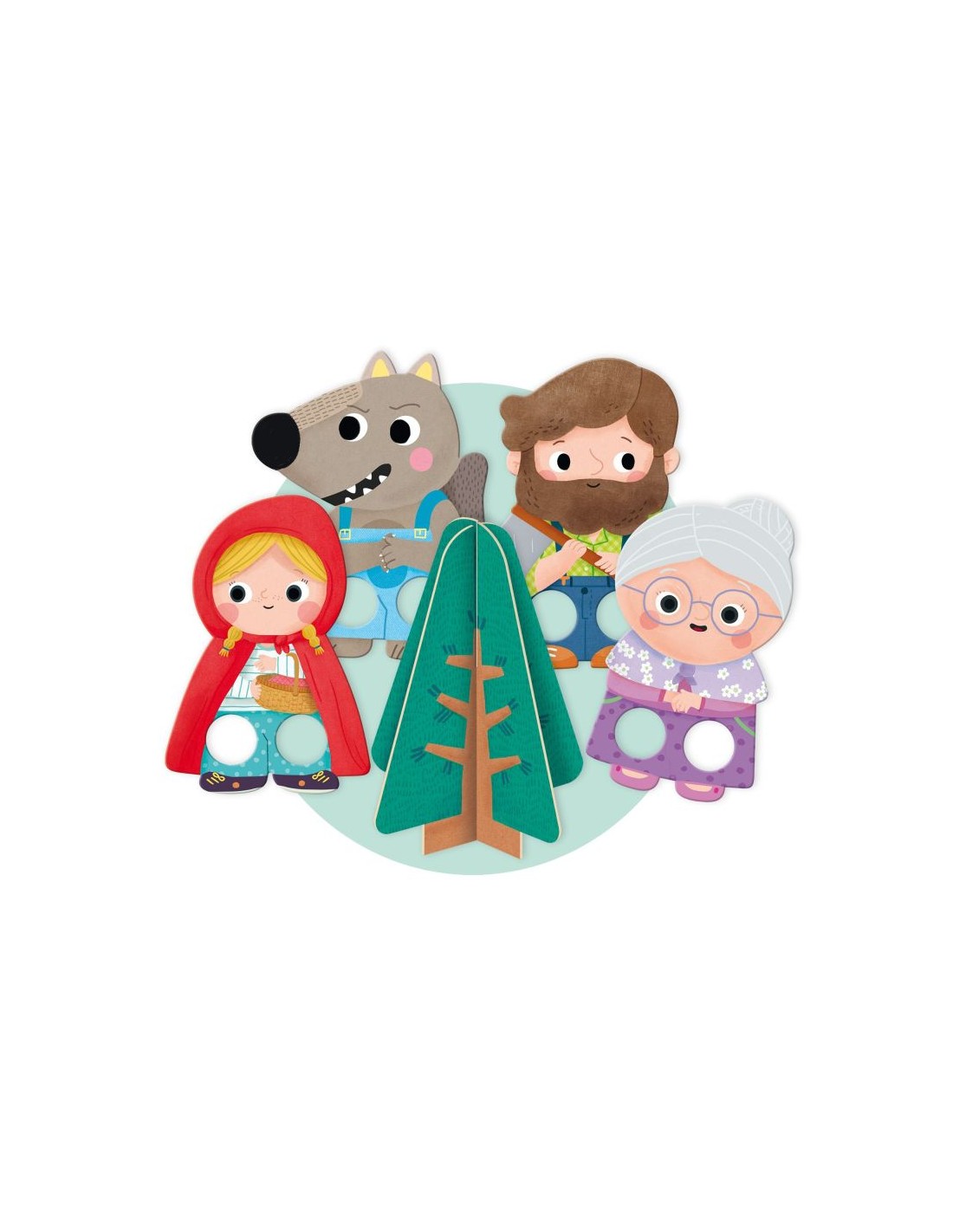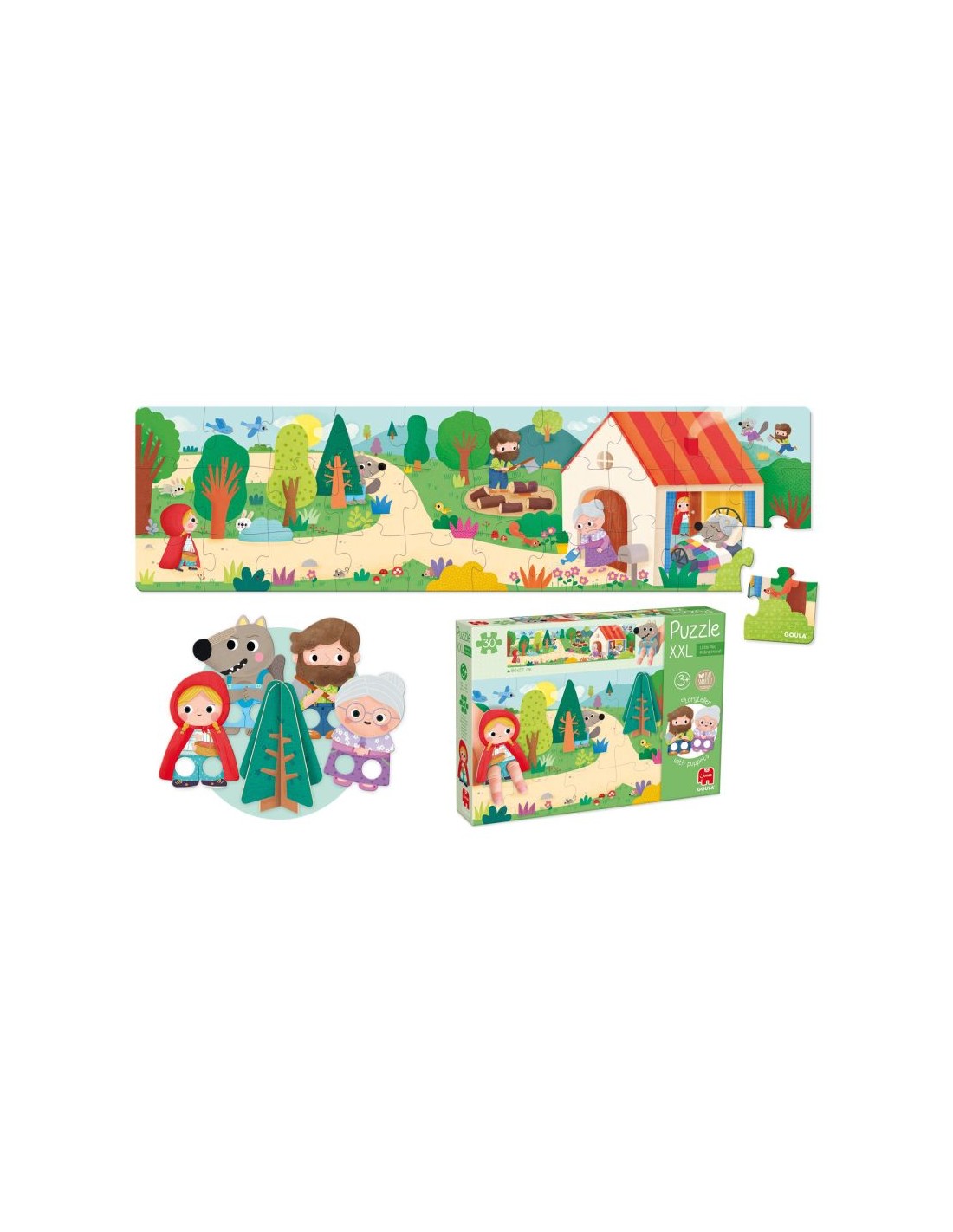 - Puzle de Caperucita Roja con marionetas de los personajes del cuento.