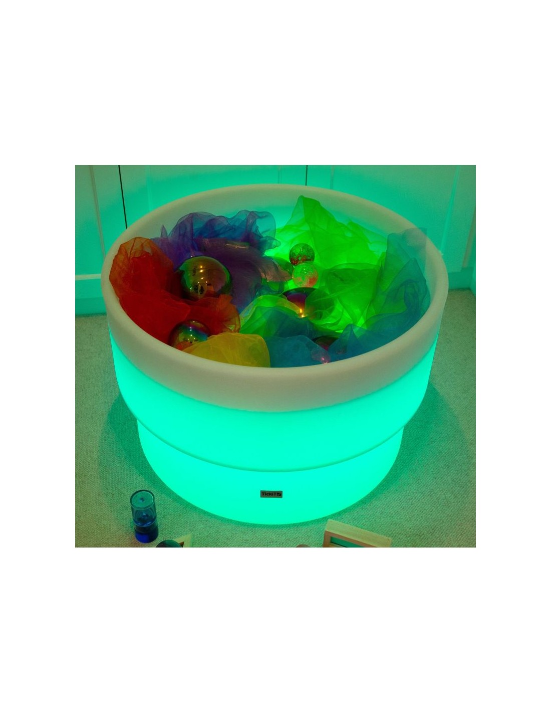 Mesa original y práctica, fácil de mover donde la unidad LED se ha optimizado para que la luz inunde uniformemente todo el área de la mesa, emitiendo un brillo suave que cambia de color con el control remoto.