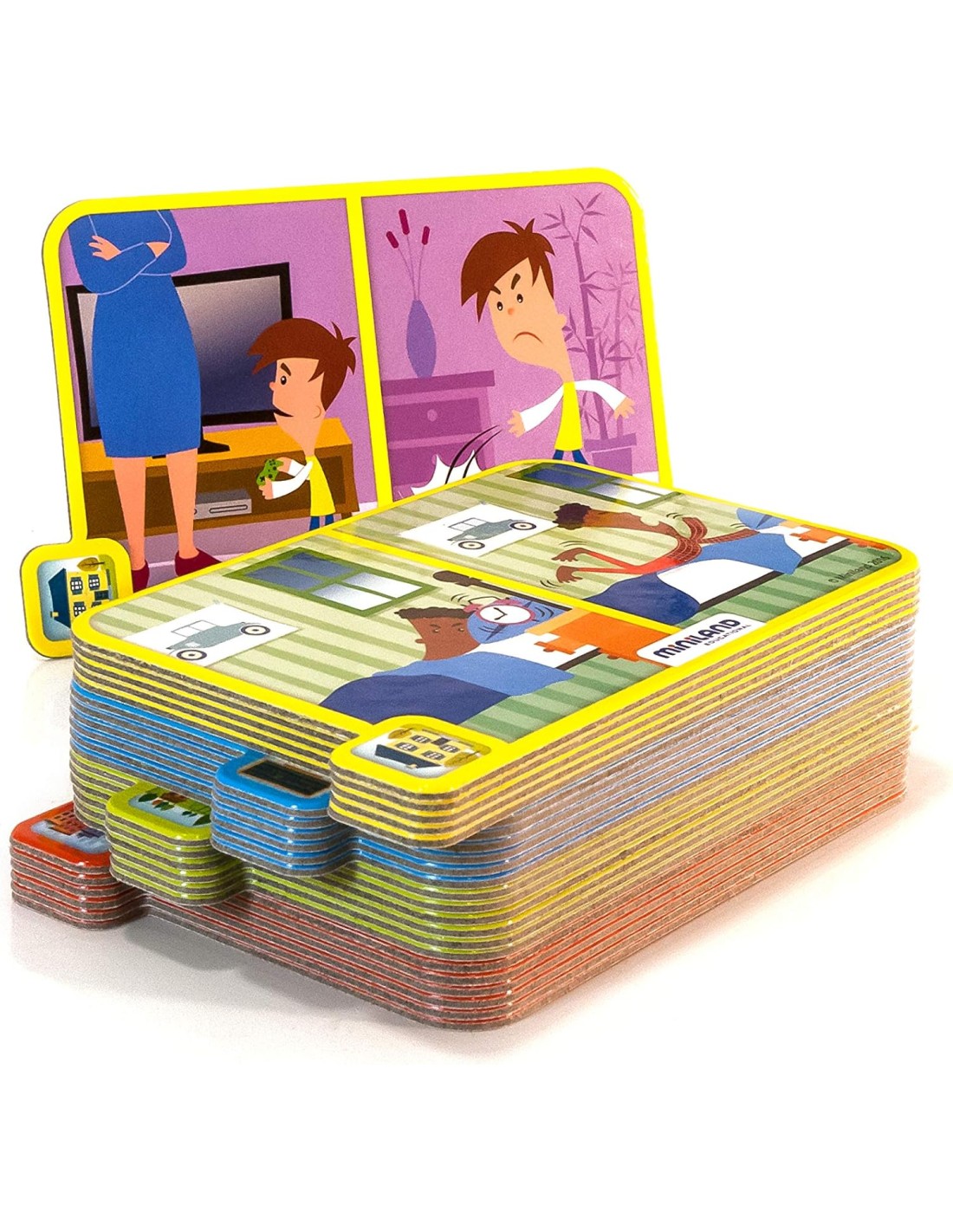 Incluye tarjetas que ocultan una acción cotidiana y que provocan enfado o tristeza.