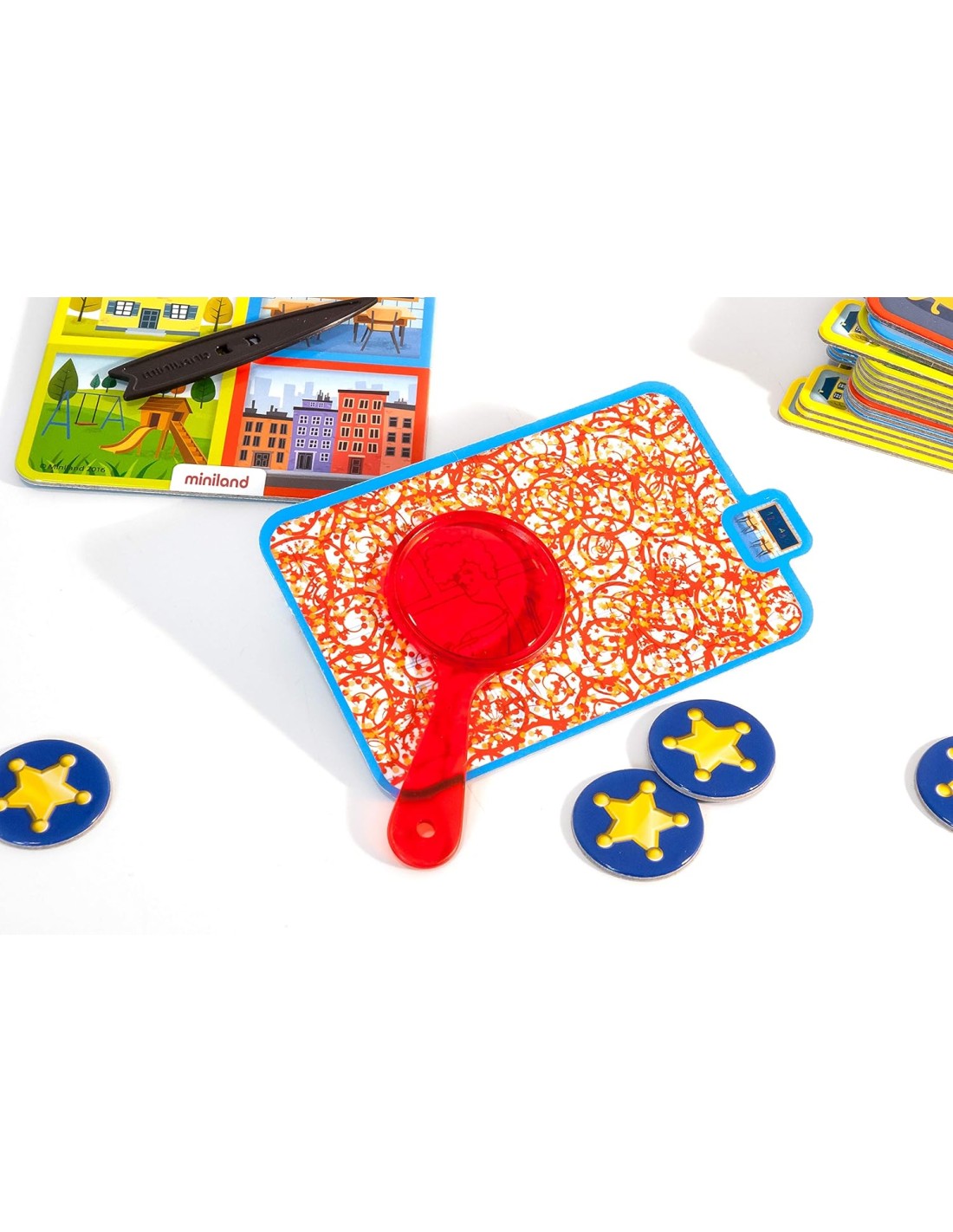 4 lupas, 1 ruleta, 24 tarjetas de juego, 18 estrellas y 1 folleto.