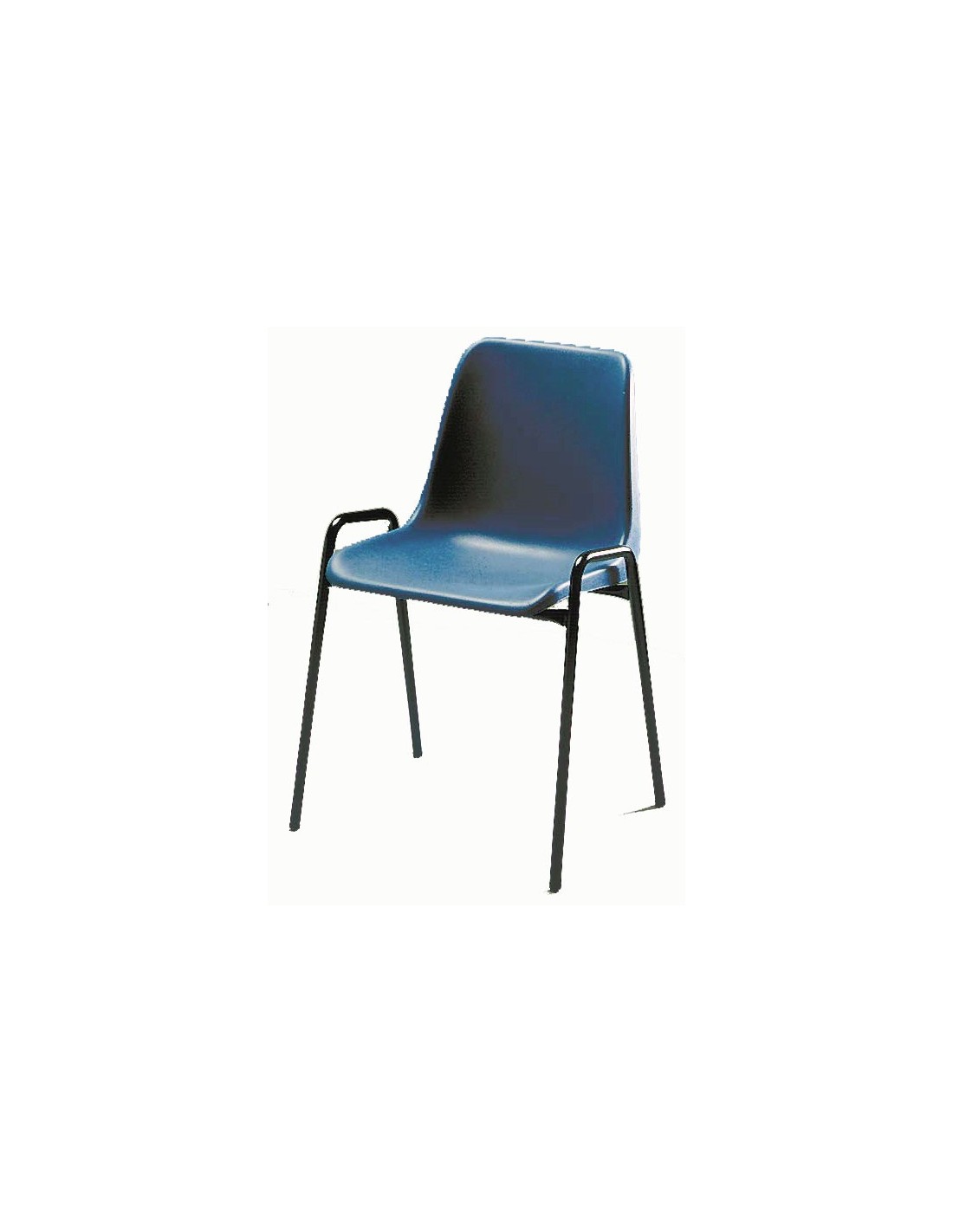 Silla con estructura en tubo de acero, carcasa polipropileno. Apilable.Varios colores: azul, naranja, negro, rojo y verde.