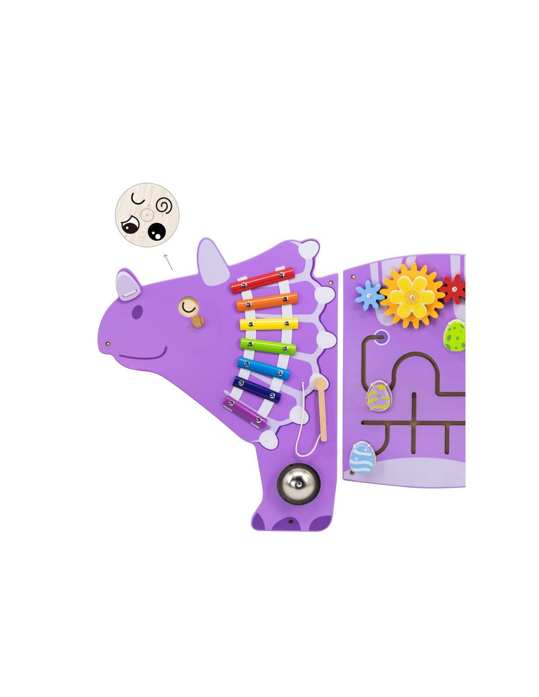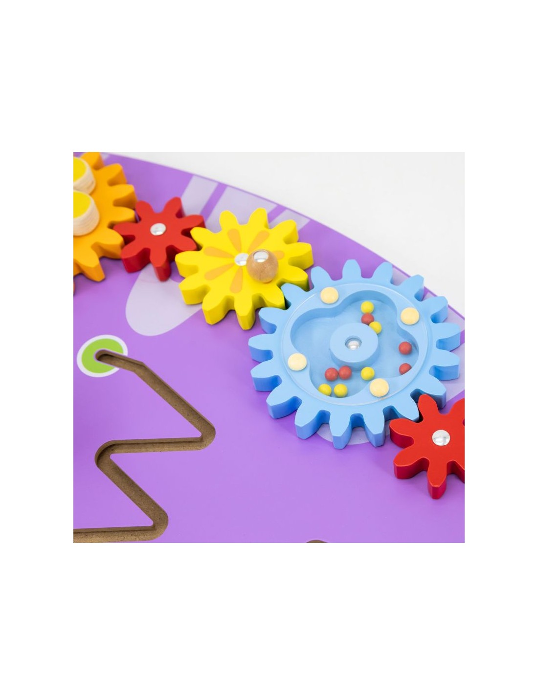 - Múltiples actividades: engranajes, pasadores, laberintos, instrumentos musicales, lanzador de cuentas, ojos móviles.