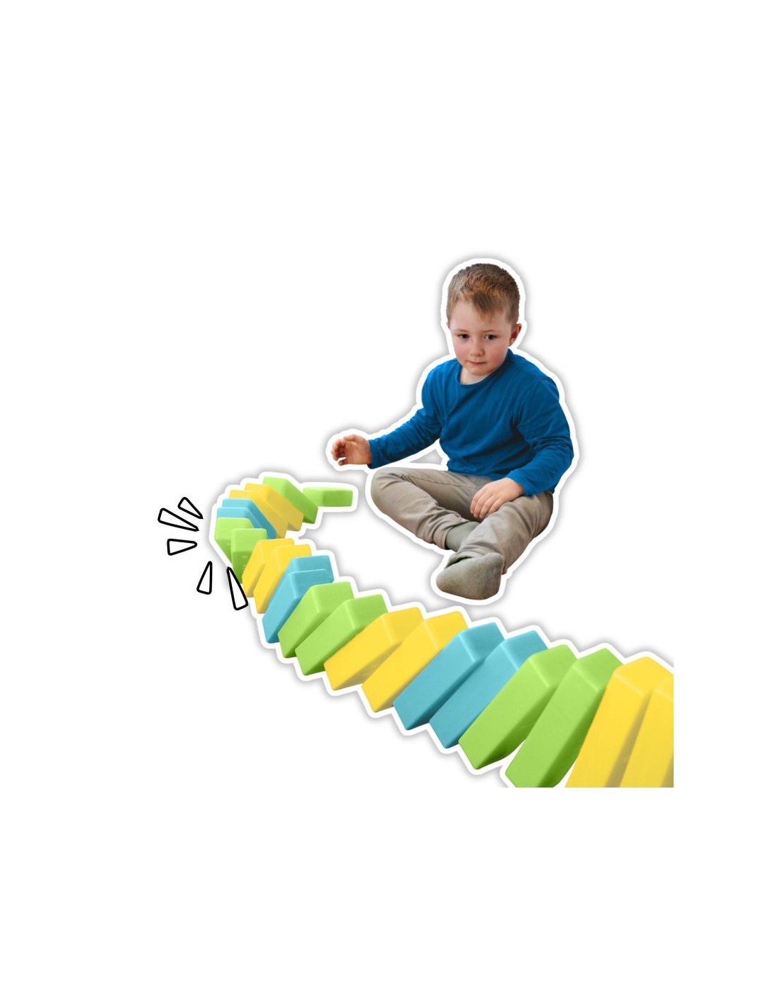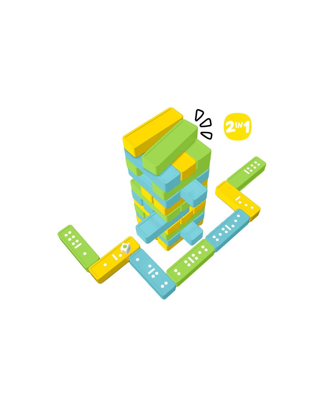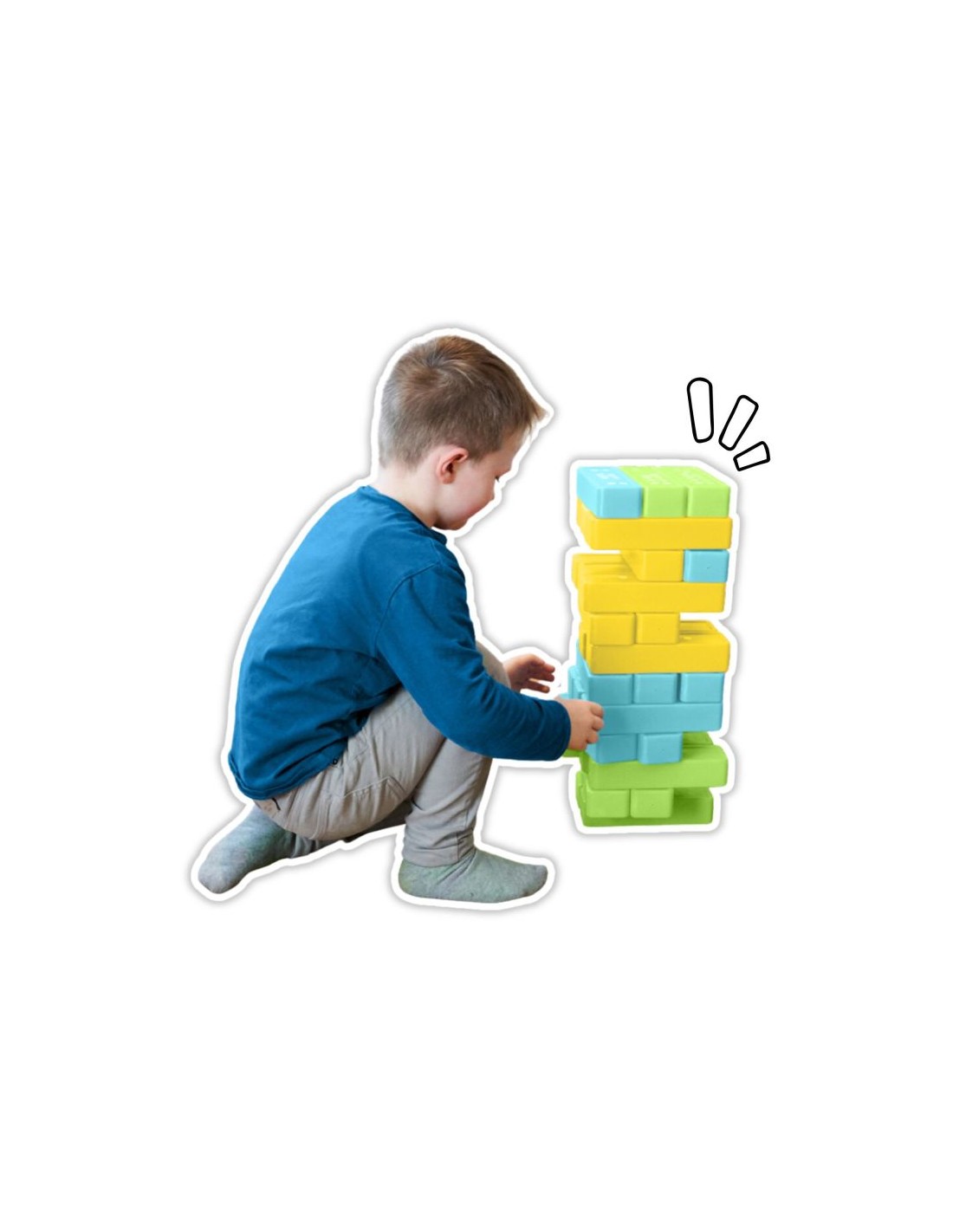 - 30 bloques que forman una torre de equilibrio y un dominó gigante.