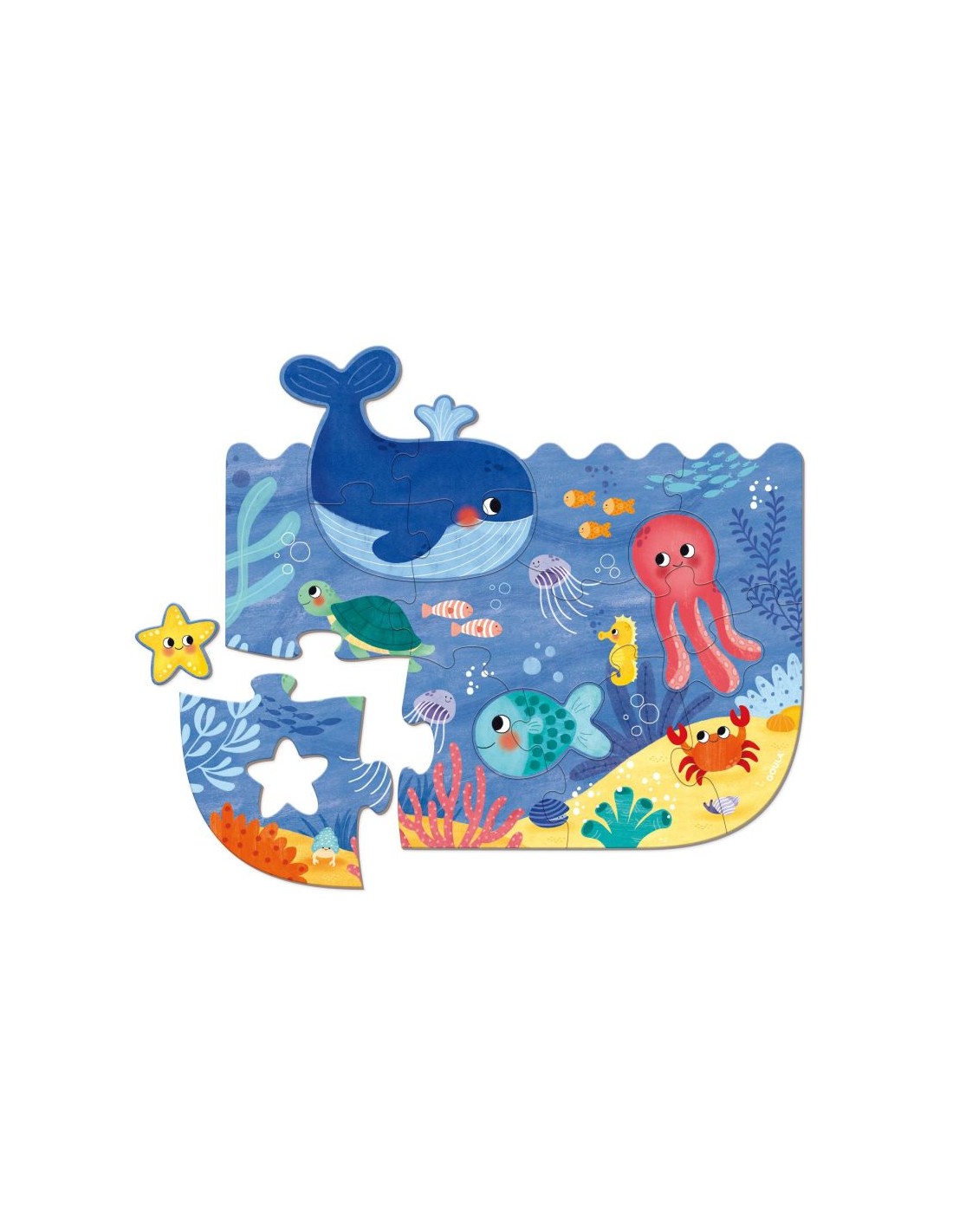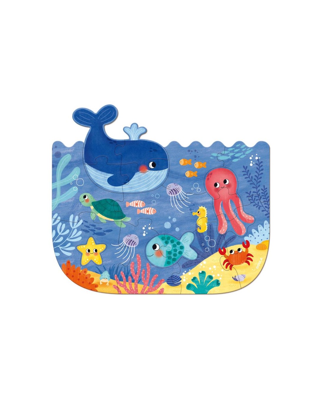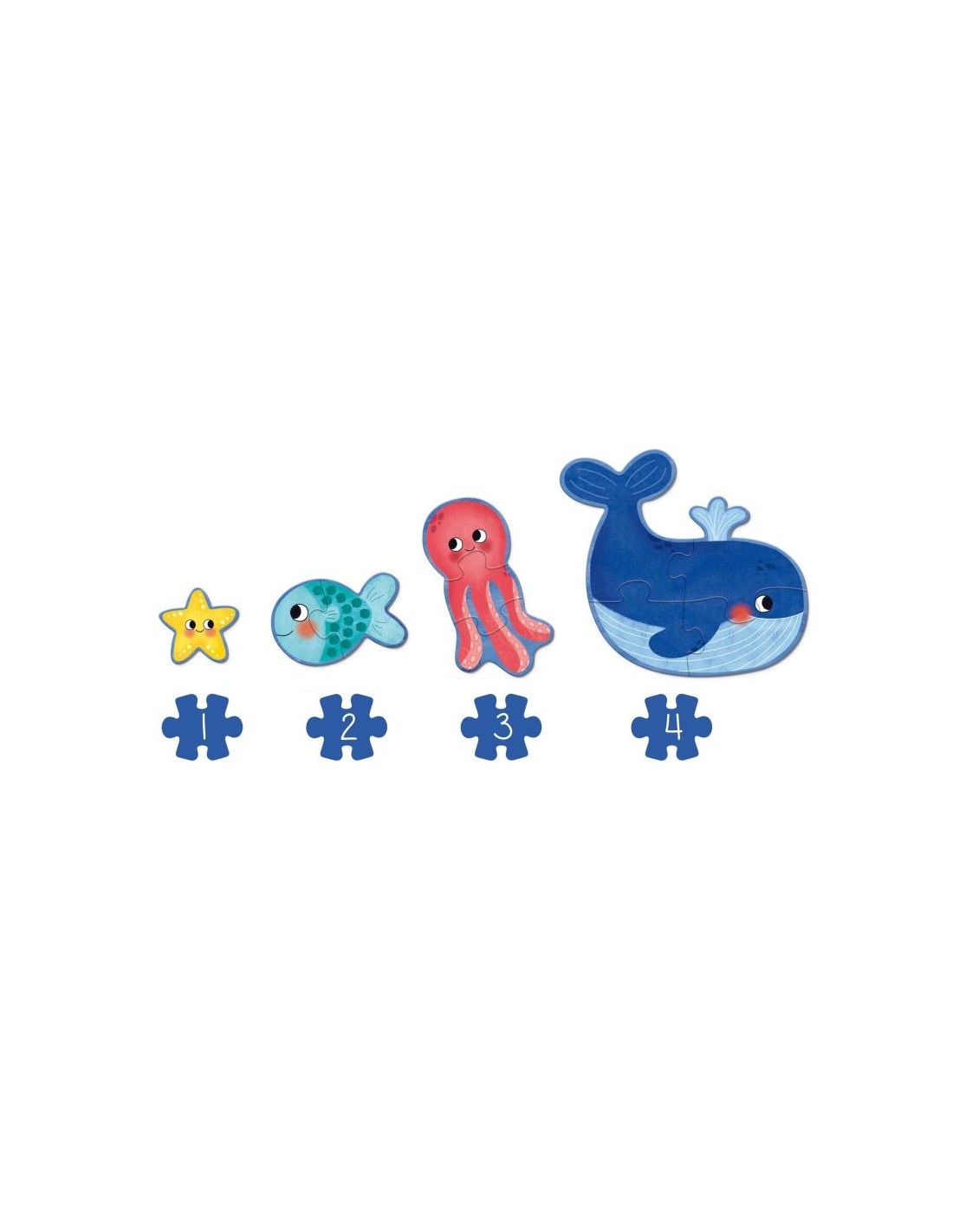 - Con pequeños puzles en su interior de 1 a 4 piezas que forman los diferentes animales del océano.
